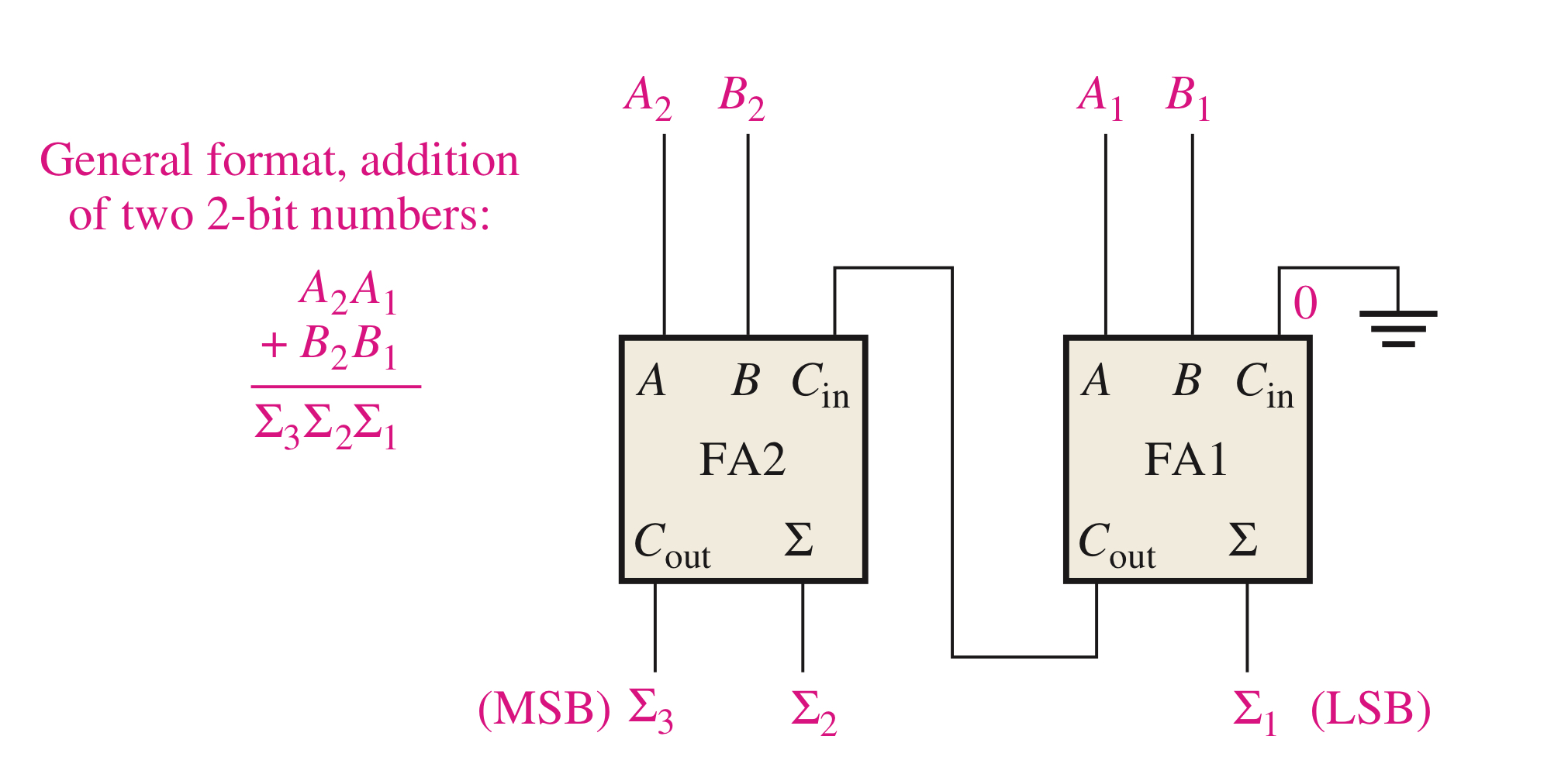 실제로 3개의 bit를 더하게 되는 것 입니다. 이 경우 2개의 binary adder를 연결하면