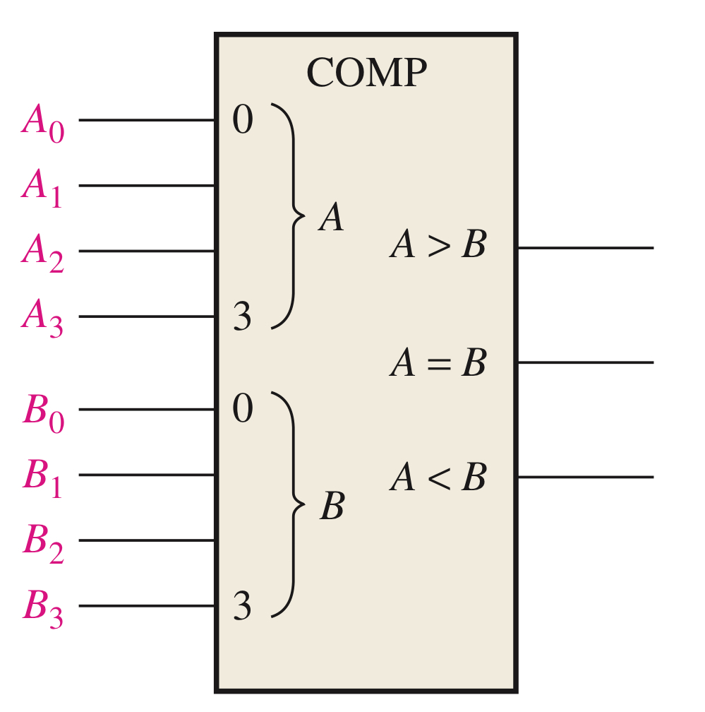 비교기(comparator)는 두 2진수의 크고 작음을 결정하기 위해 그 두 수의 크기를 비교합니다.