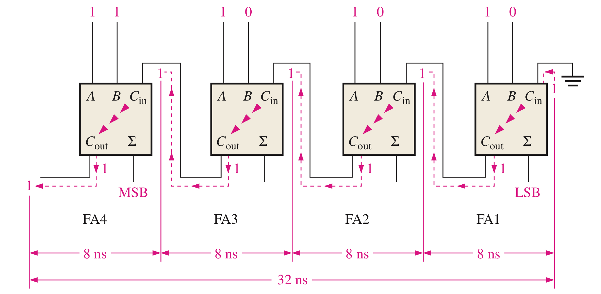그렇기 때문에 캐리 전달지연은 이 가산기의 속도를 제한합니다.