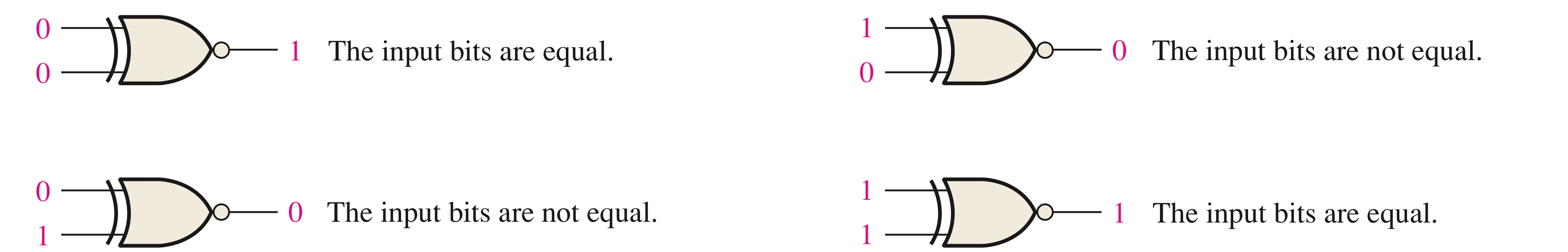Exclusive-NOR 두 입력 비트가 다를 때 '0'을 출력하고, 같을 때 '1'을 출력합니다.
