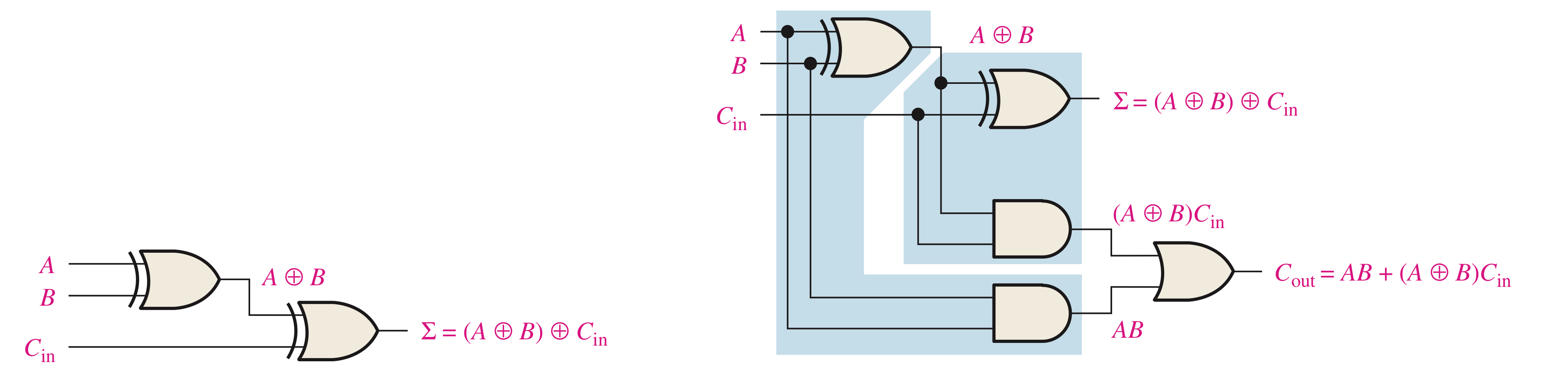 왼쪽 자료에서 $C_{out} \;=\; AB$이며 합의 출력에서 A와 B가 같지 않을 때만