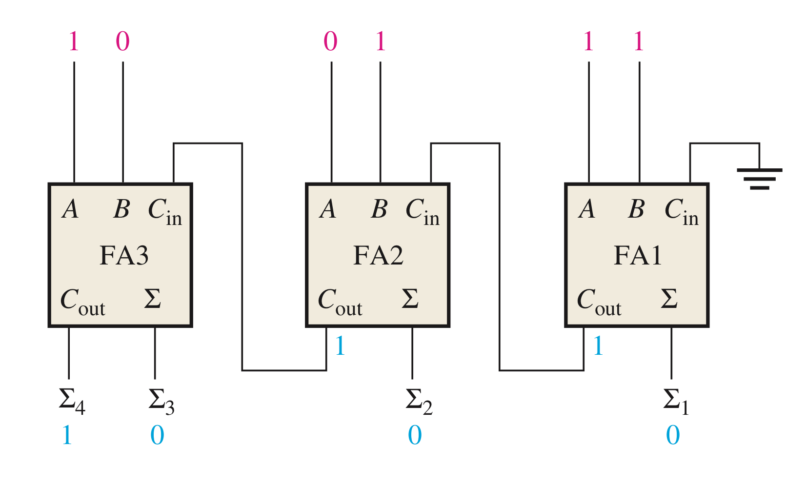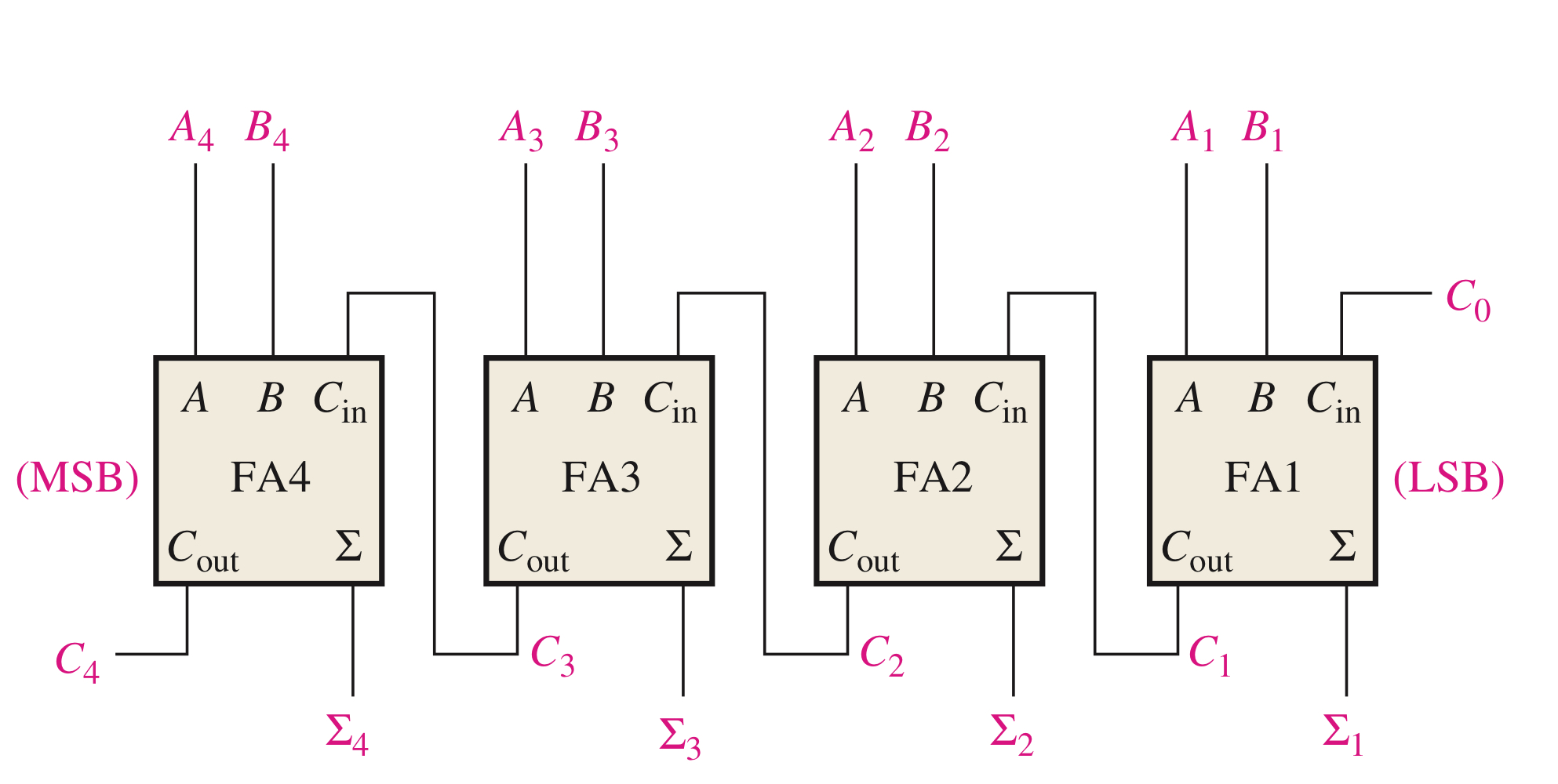 3비트의 경우 3개의 전가산기 그리고 4비트의 경우 4개의 전가산기가 필요합니다.