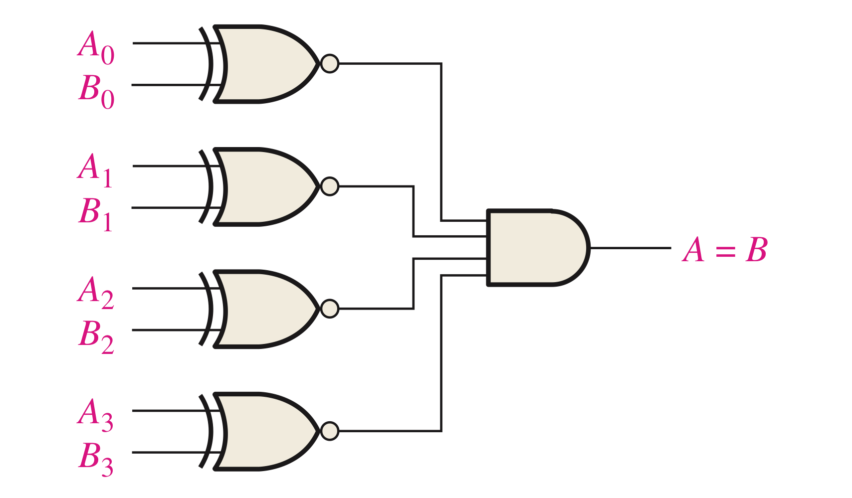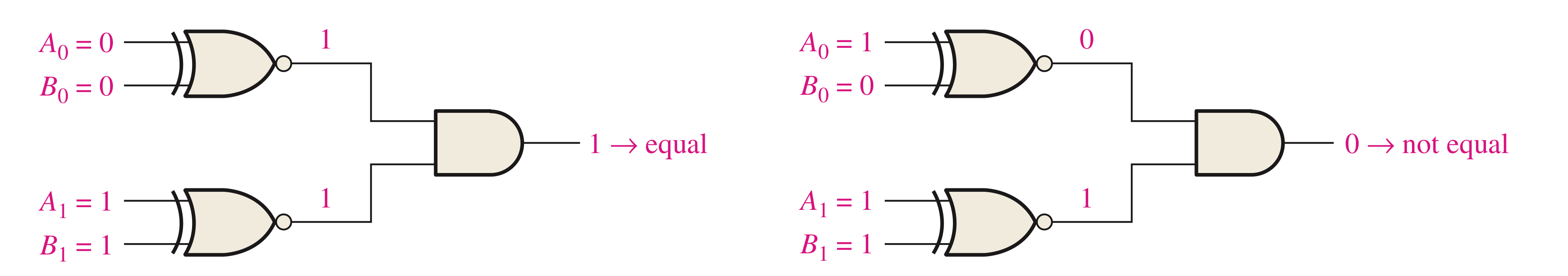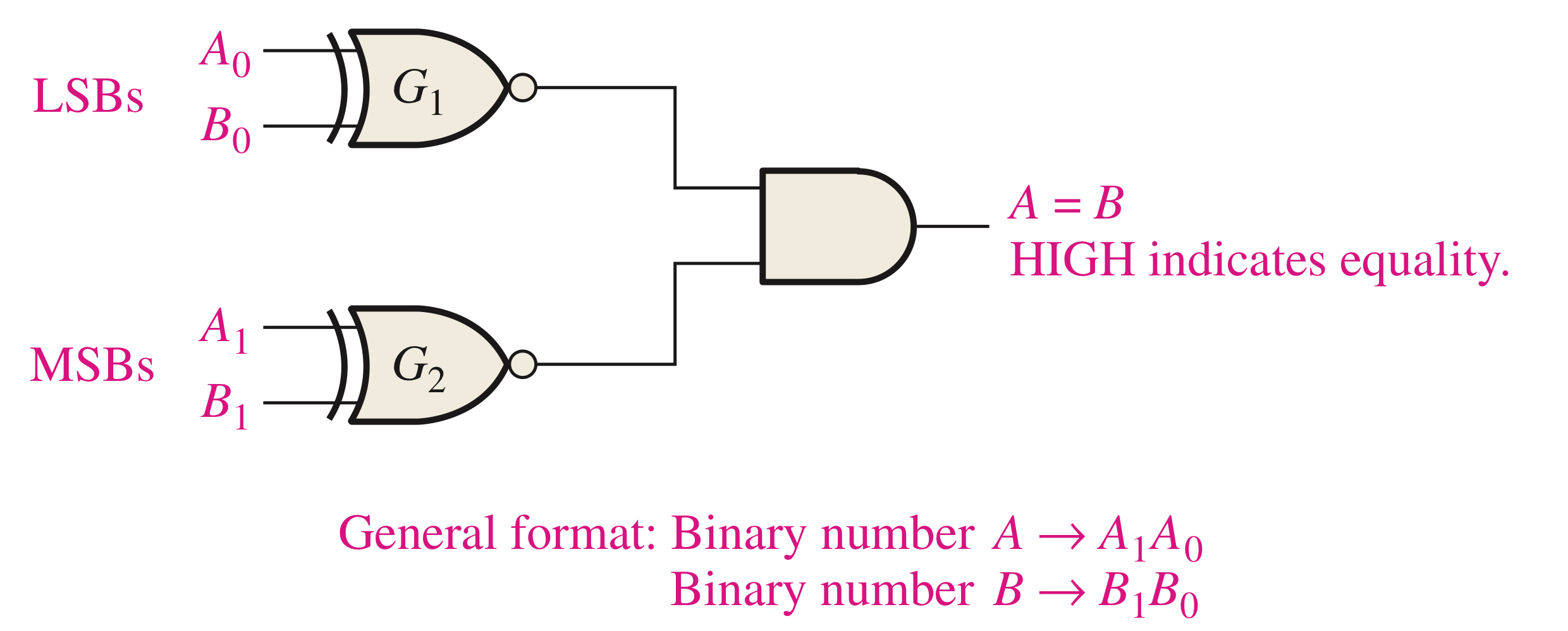 하지만 2비트 2진수를 비교하려면 Exclusive-NOR 게이트가 하나 더 필요합니다.