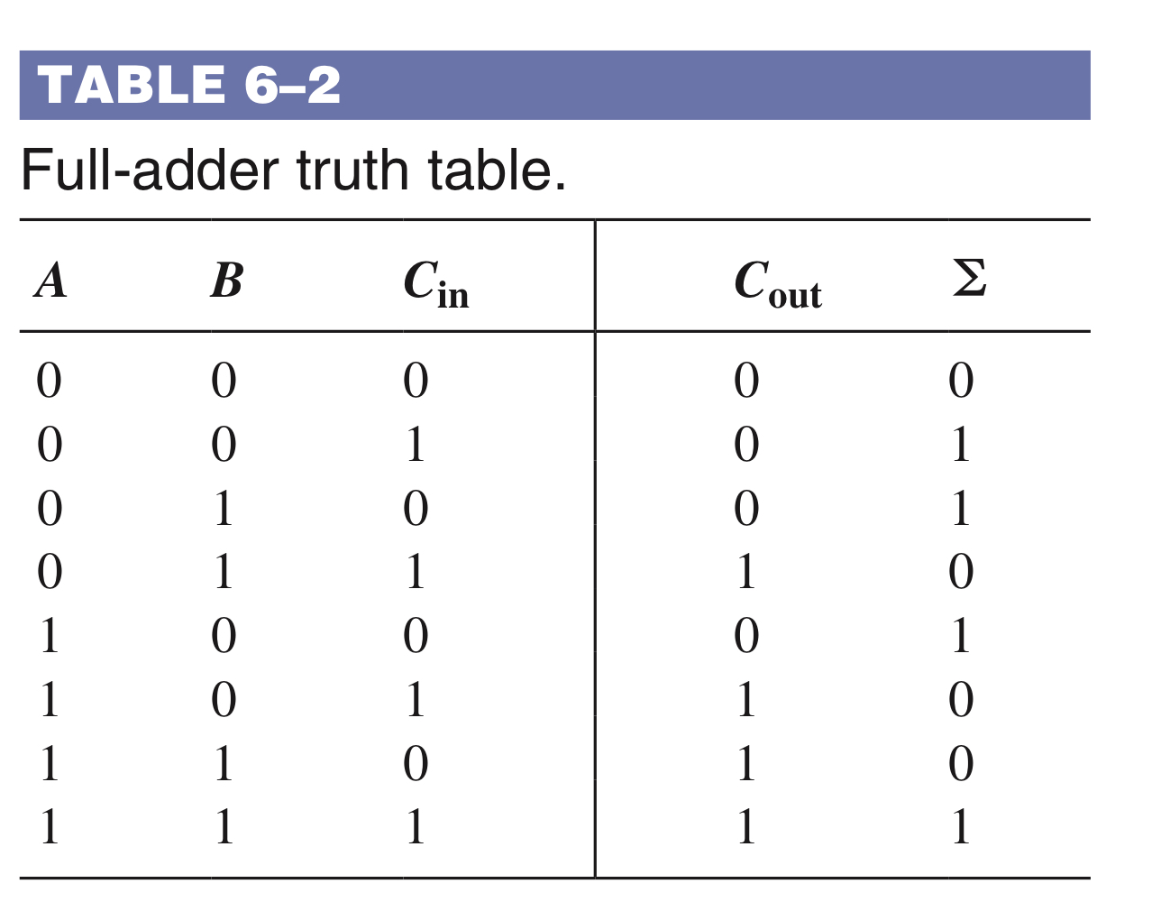 즉, 각 단에서 위의 세 가지가 함수는 입력비트 A와 B그리고 LSB가산기의 캐리입력 비트가