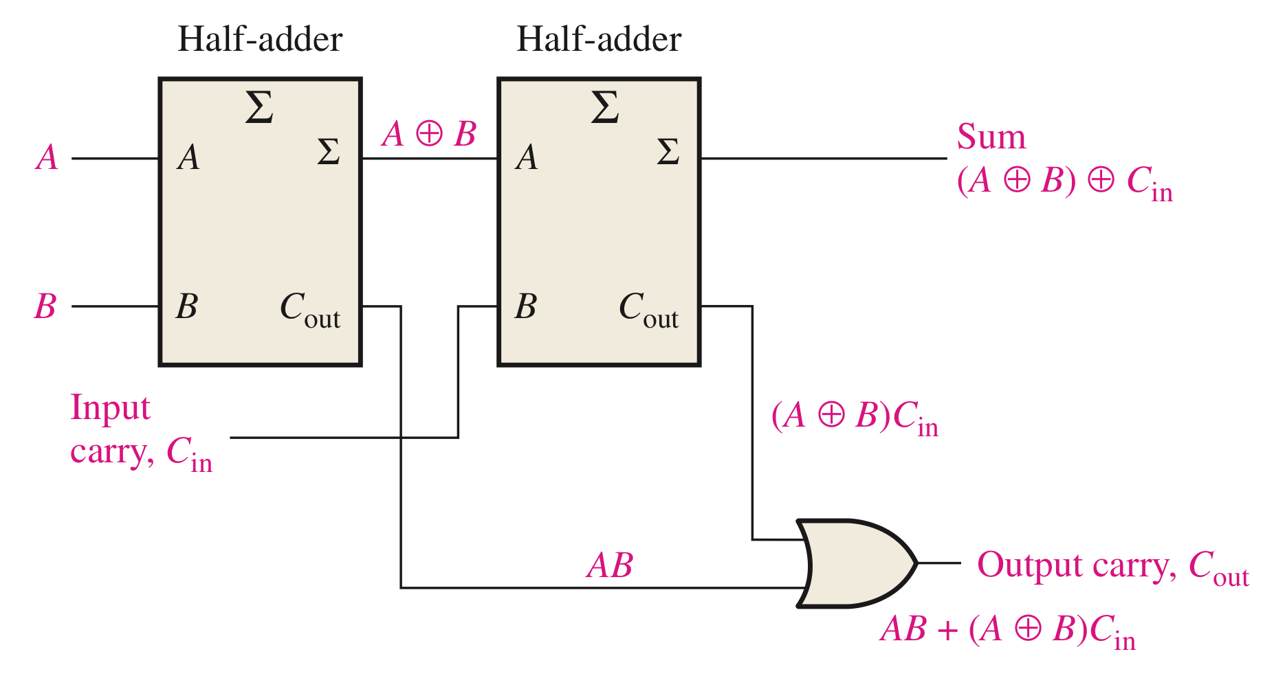 알 수 있습니다. $\Sigma = A \oplus B = A\overline{B} + \overline{A}B$