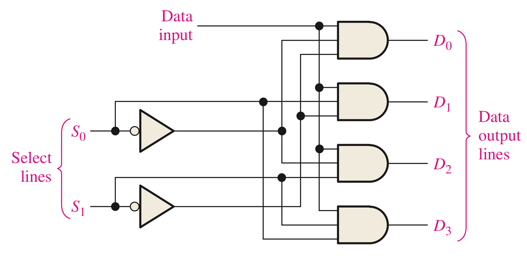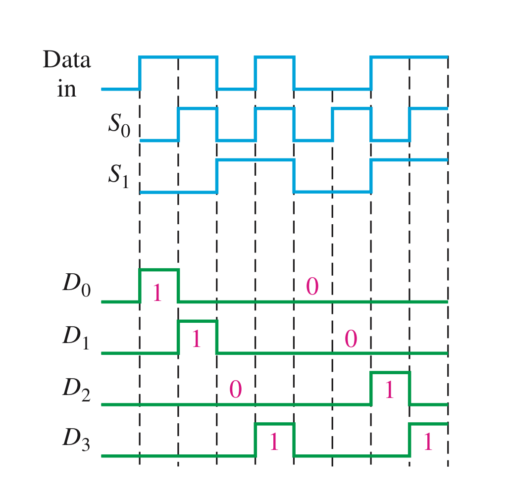 3. ($S_{0} = 0\; , \; S_{1} = 1$)이라면 $D_{2}$출력 $Y = D_{2}\,S_{1}\,\overline{S_{0}}$