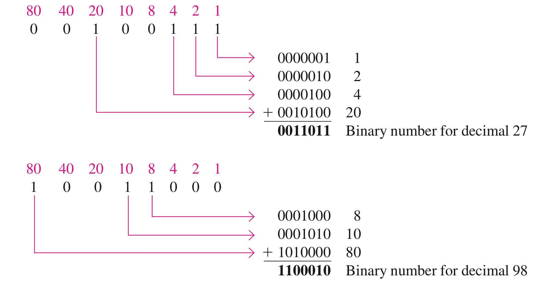 예를 들어서, ASCII문자 S는 1010011입니다.