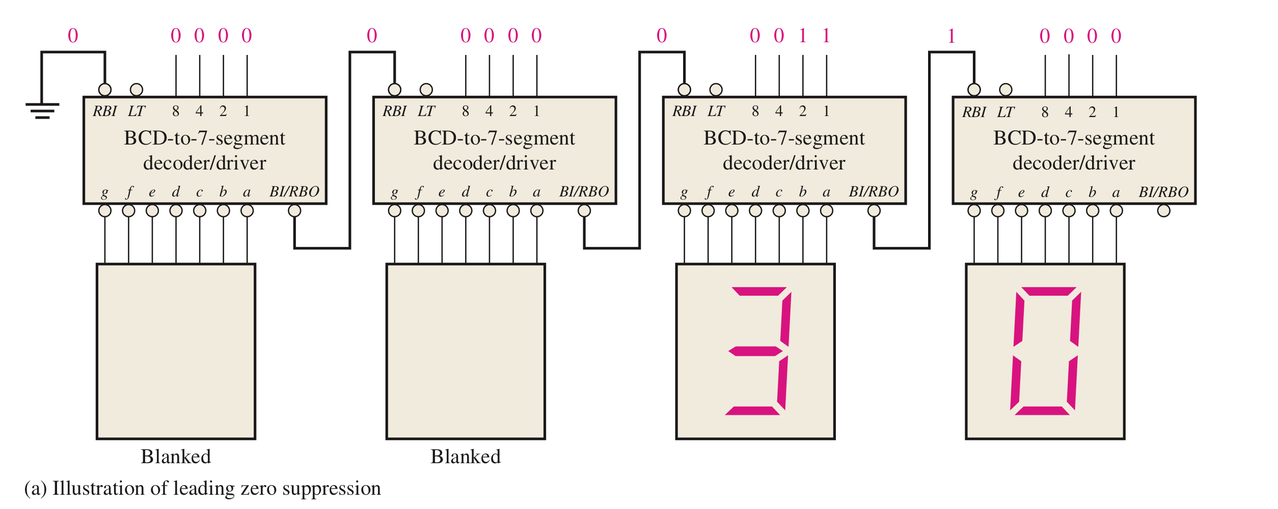 74LS47에는 '4자리 표시기에서의 0억제'라는 것이 있습니다.