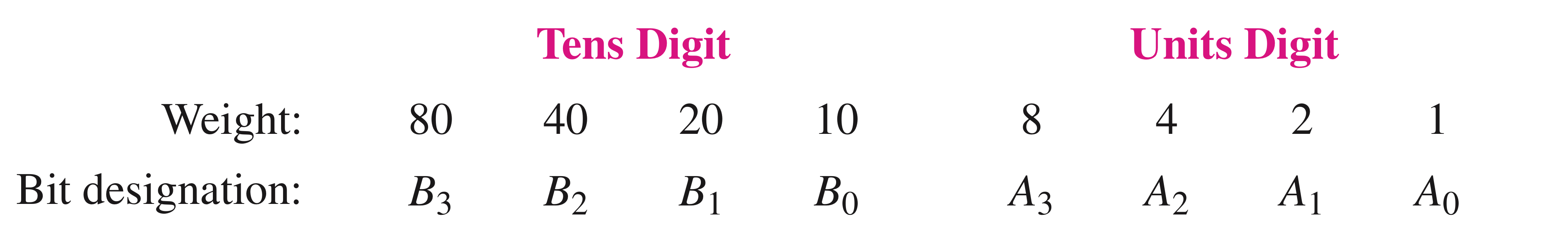 왼쪽의 비트의 가중치는 10을 그리고 오른쪽 비트의 가중치는 1입니다.