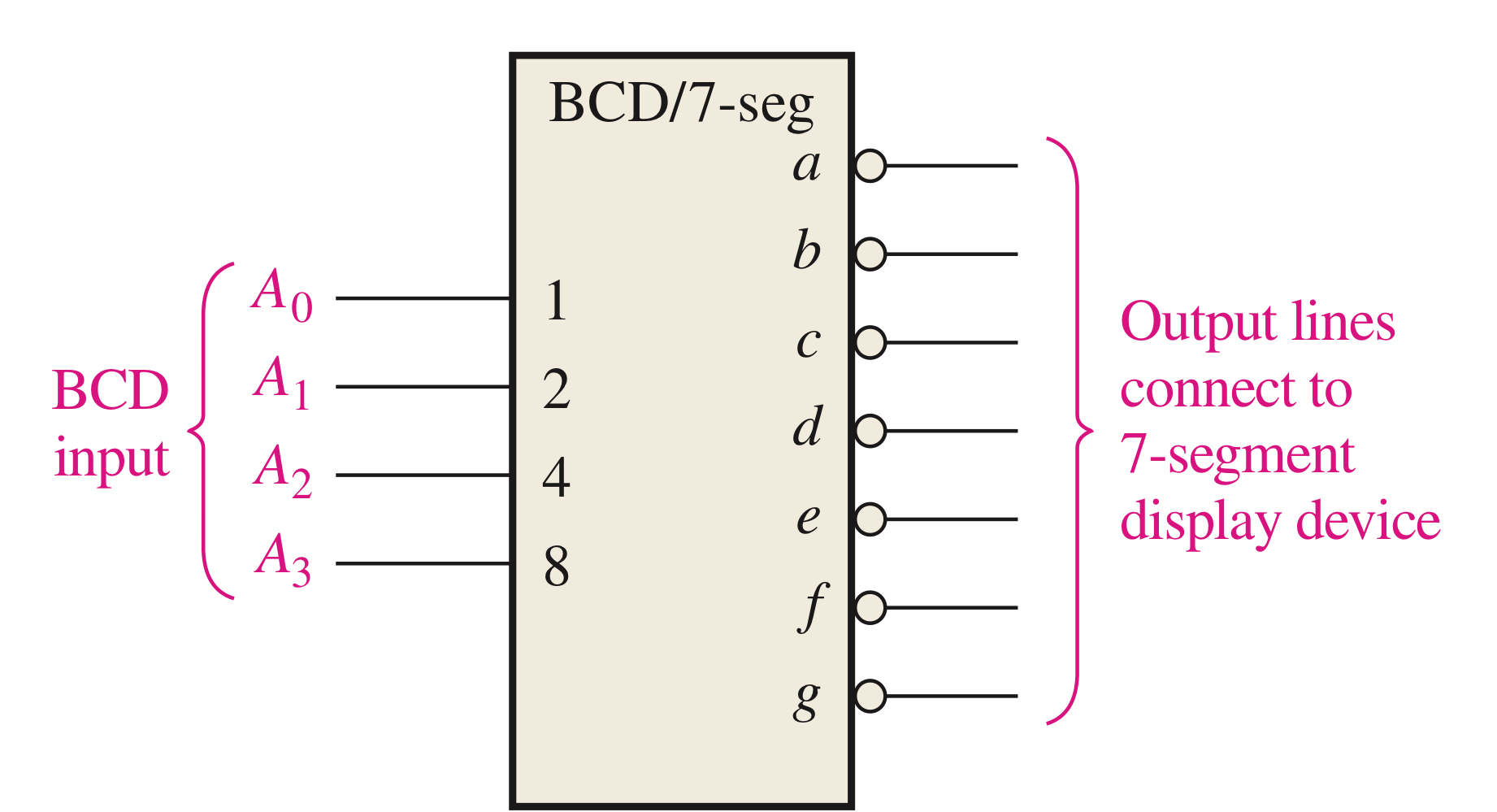 7-Sgement 디스플레이 장치를 구동하여 십진법 판독값을 표현합니다.