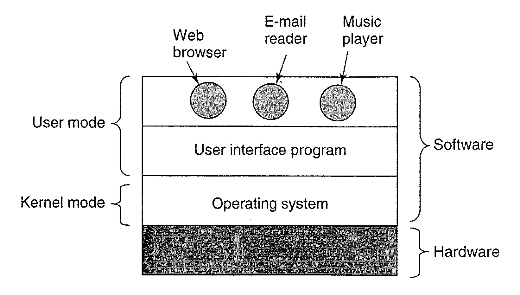 "운영체제의 역할은 사용자 프로그램에게 컴퓨터에 대한 보다 좋고, 단순하고, 깨끗한 모델을 제시하고, 메모리, 디스크 마우스, 디스플레이 등 자원을 다루는데에 있습니다."