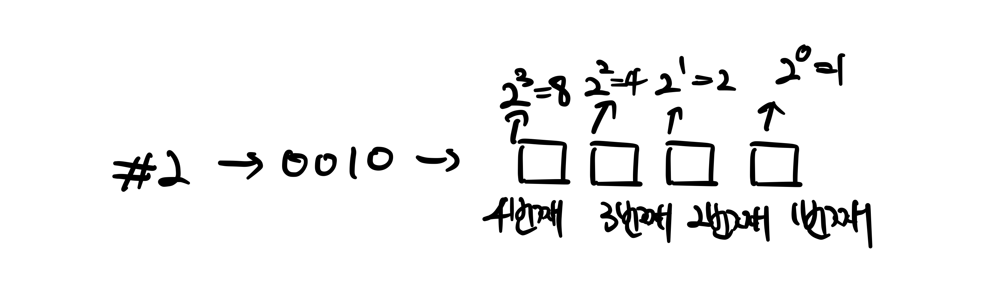 하지만 저희는 각 자리가 $2^{n}$의 weight를 가지고 있는 것을 알고 있습니다.