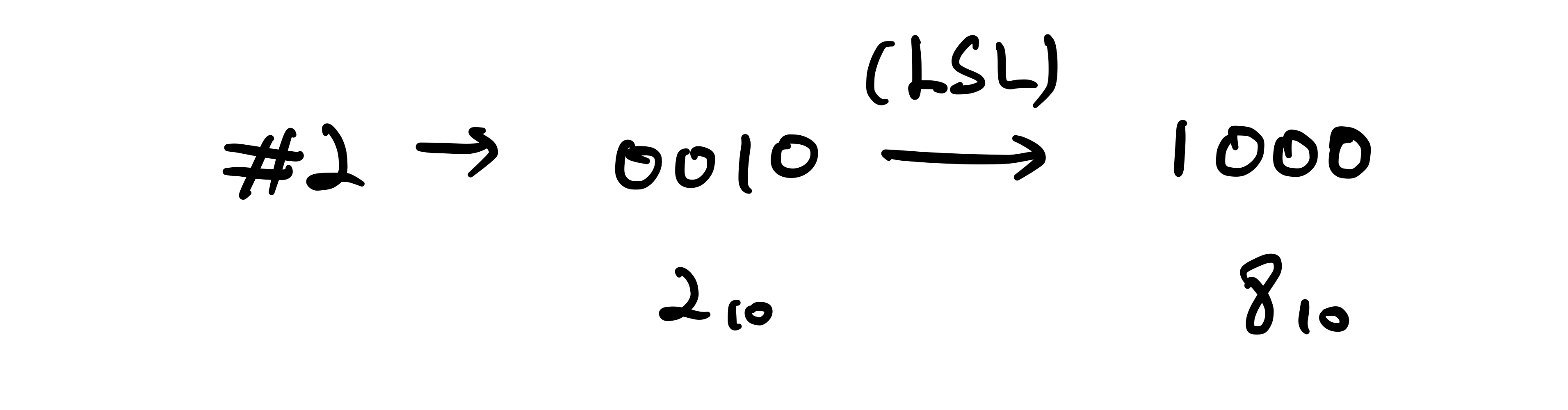 위의 그림을 가지고 설명하자면, 0010을 왼쪽으로 두번 shift하게 되면 1000이 되고 8이라는 숫자가 나옵니다.