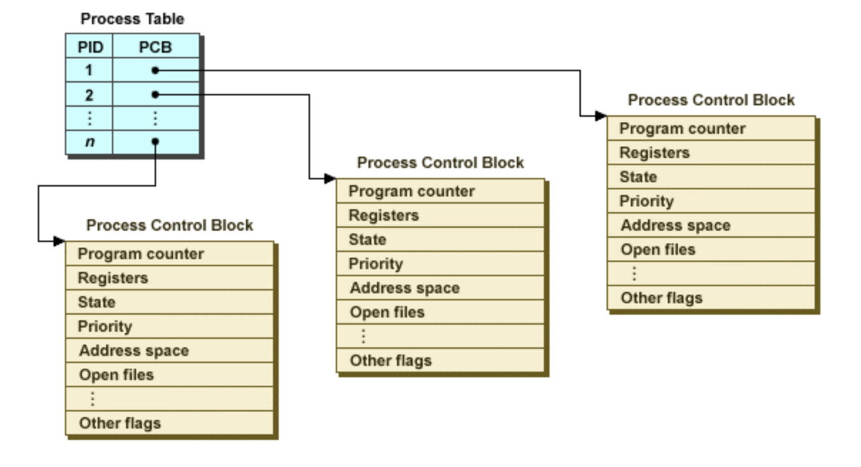 - PID는 이 프로세스 테이블의 인덱스 또는 포인터 역할을 합니다. 즉, PID는 프로세스 테이블에서 해당 프로세스의 정보를 찾기 위한