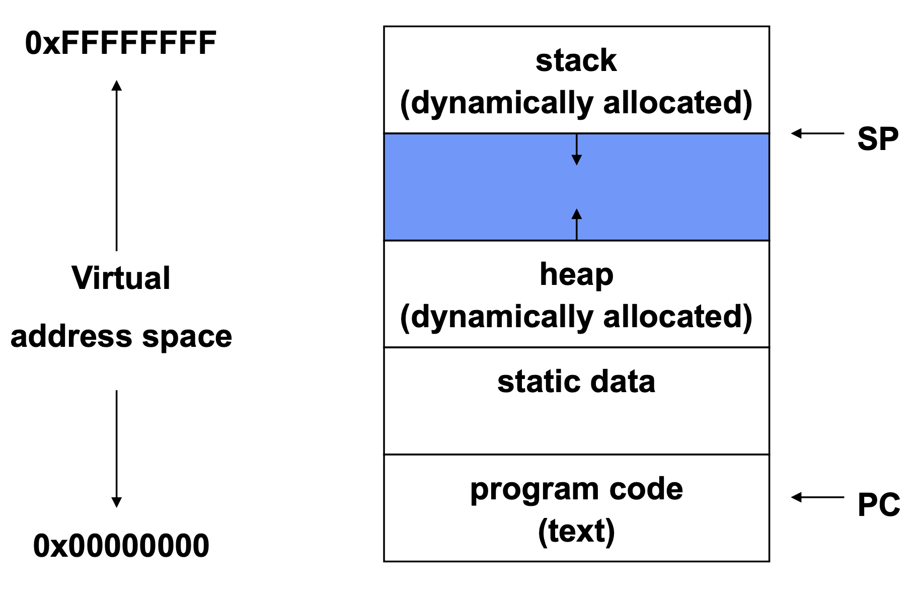 주소 공간은 프로세스가 사용할 수 있는 메모리 영역입니다. 이 공간은 보호되는 가상 메모리로, 각 프로세스는 다른 프로세스와