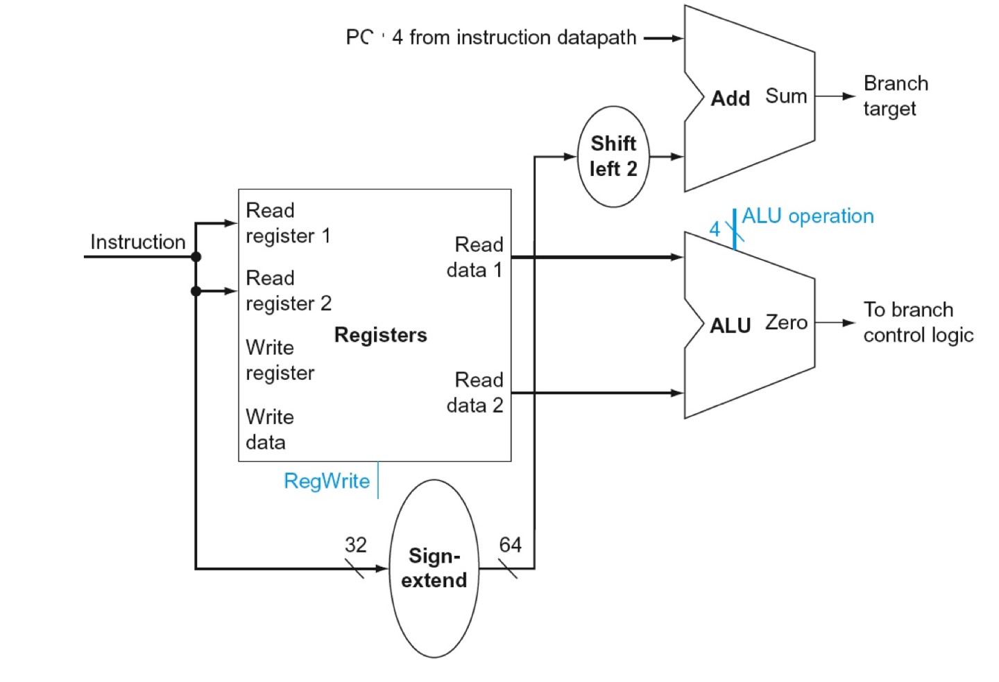 위의 구조는 R-Format Instructions를 수행할 때 사용되는 CPU의 부분만 떼어온 것 입니다.