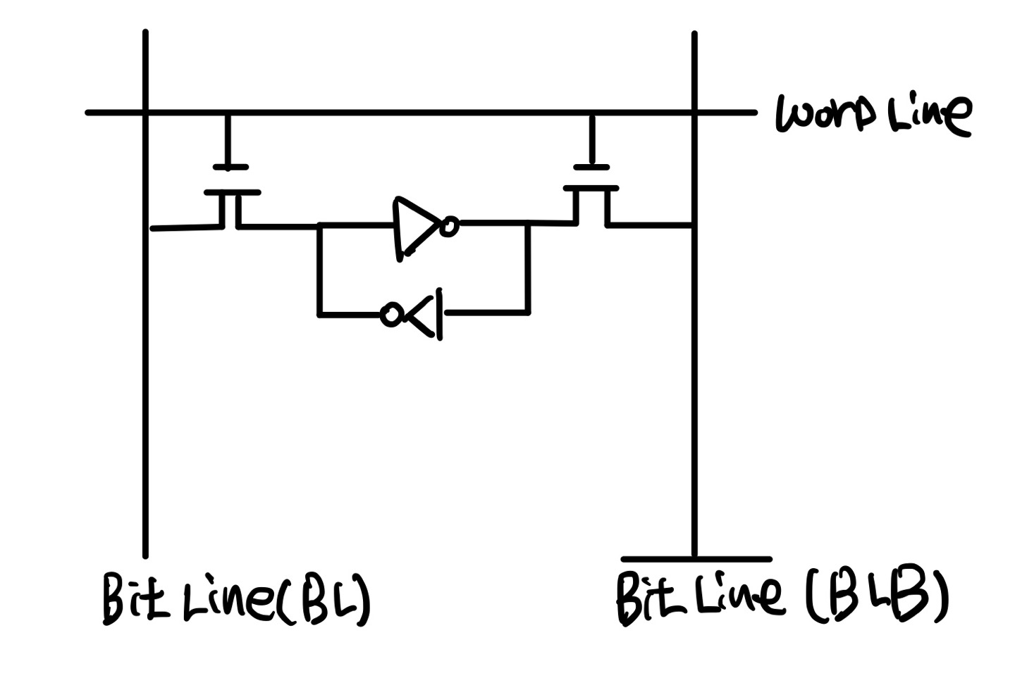 저희가 흔히 알고 있는 SRAM을 Transistor level에서 회로를 그려보면 위와 같습니다.