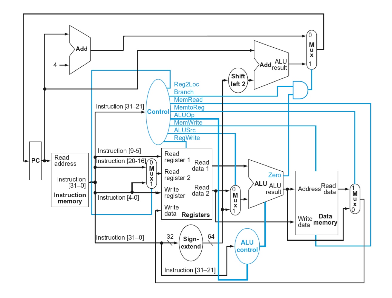 뒤에서 보겠지만, Read register1은 Instruction의 [9-5], Read register2은 Instruction의 [20-16] 혹은 Instruction의 [4-0]에서
