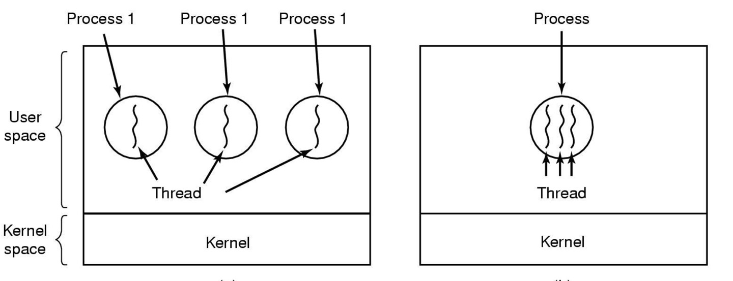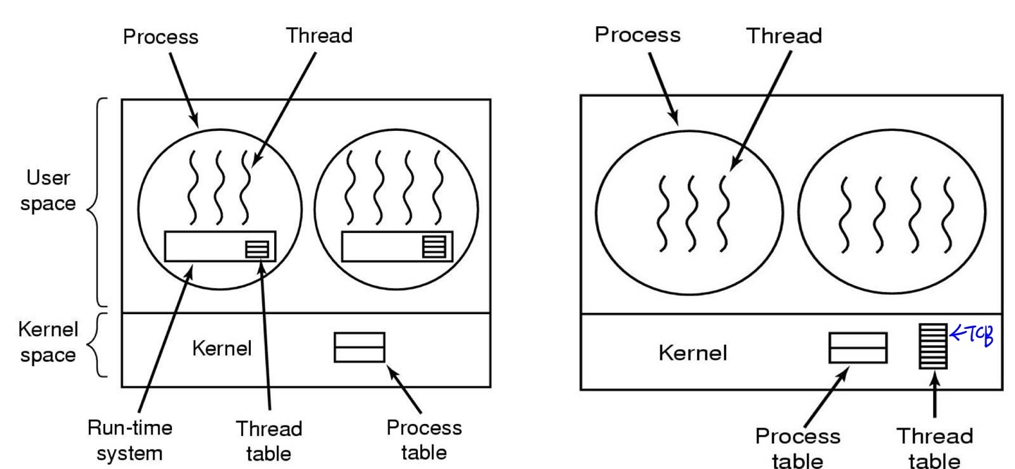 - Kernel threads and user-level threads