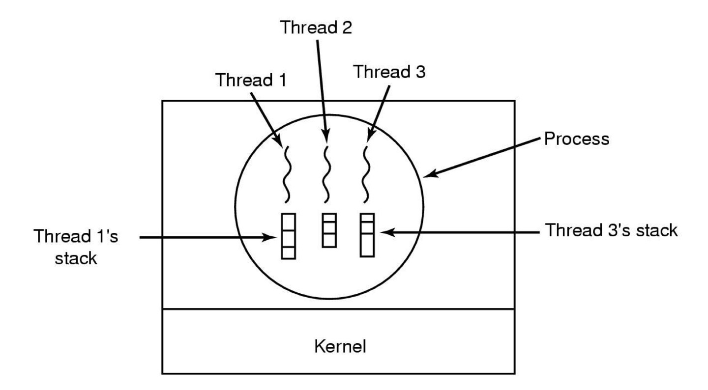 그림에 적혀있는 것 처럼 Thread table은 TCB와 비슷한 것으로, CPU상태, execution등 상태를 나타낸 것 입니다.