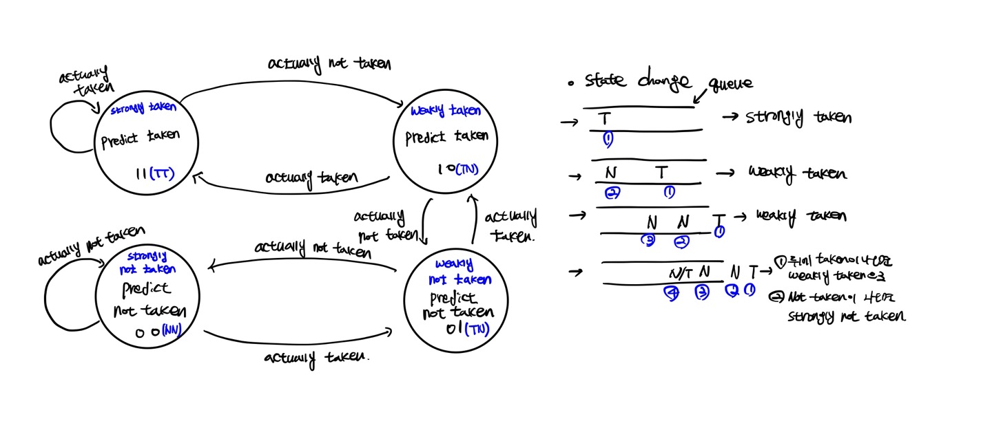 실행될 때 더 나은 예측을 할 수 있게 하며, 1bit predictor와 2bit predictor를 사용하게 됩니다.