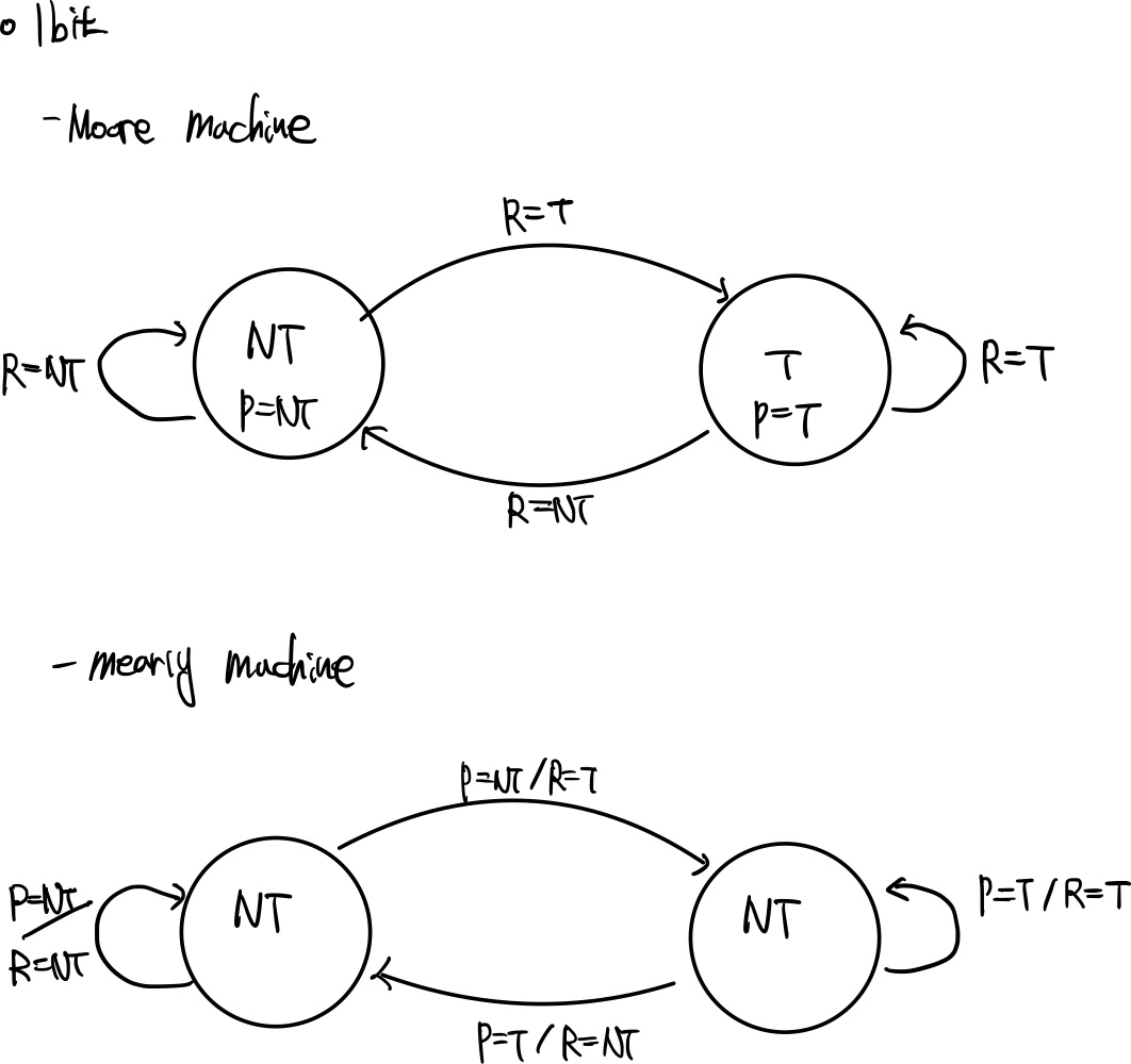 원래 Moore Machine으로 표현하지만, Mealy Machine으로 설계된 것 또한 표현해본 것 입니다.