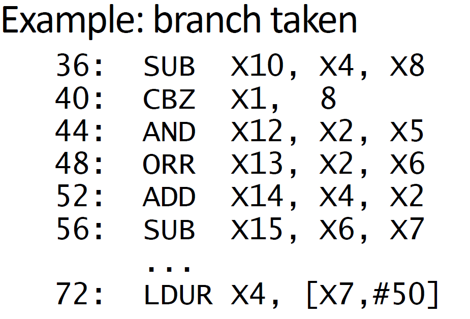쉽게 말해서, CBZ와 같은 분기 명령어를 만났을 때, CBZ가 가르키는 주소로 분기를 하게 되고 파이프라인은