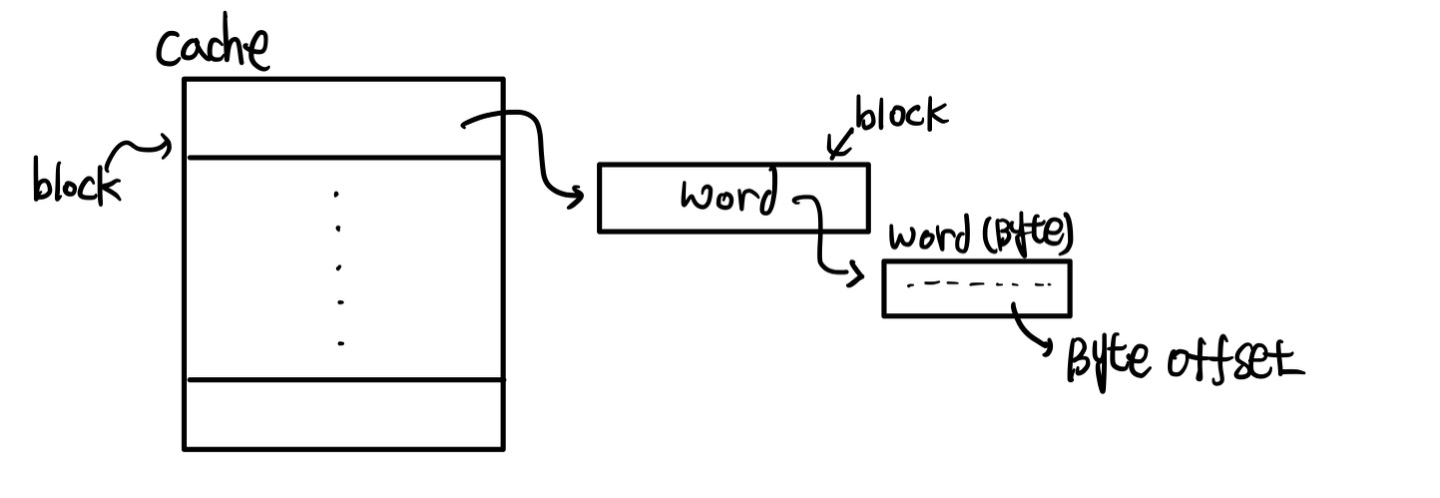 block offset은 캐시 블록 내에서 특정 데이터를 찾기 위한 위치를 가르키는 것 입니다.