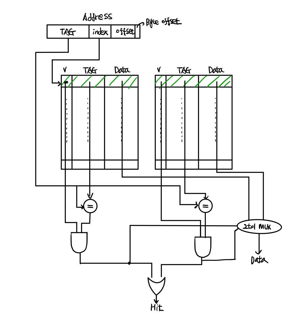 위의 문제를 2-way associate로 풀기 위해서는 해당 그림을 이해해야 합니다.