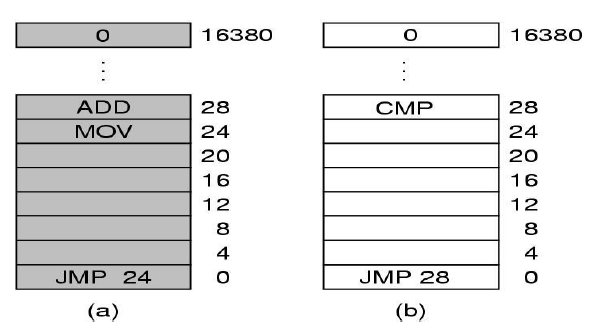 (a)를 보면 ADD의 주소가 28번지이고 (b)프로그램 또한 CMP라는 Instruction이 28번 주소에 있습니다.