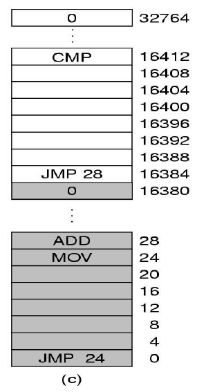분명히 JMP 28을 하면 CMP Instruction이 실행되어야 하는데, (c)에서 보면 28번지에는 (a)프로그램의 ADD가 있기 때문에