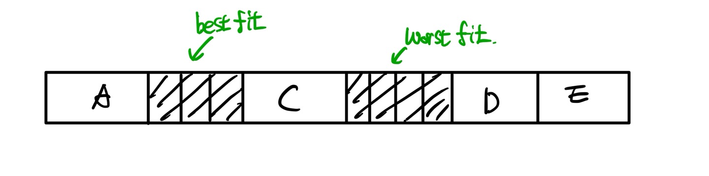만약 두 개의 공간을 차지하는 program이라면 memory 전체를 다 살펴본 이후에 딱 맞는 공간을 찾아서 Fragmentation을