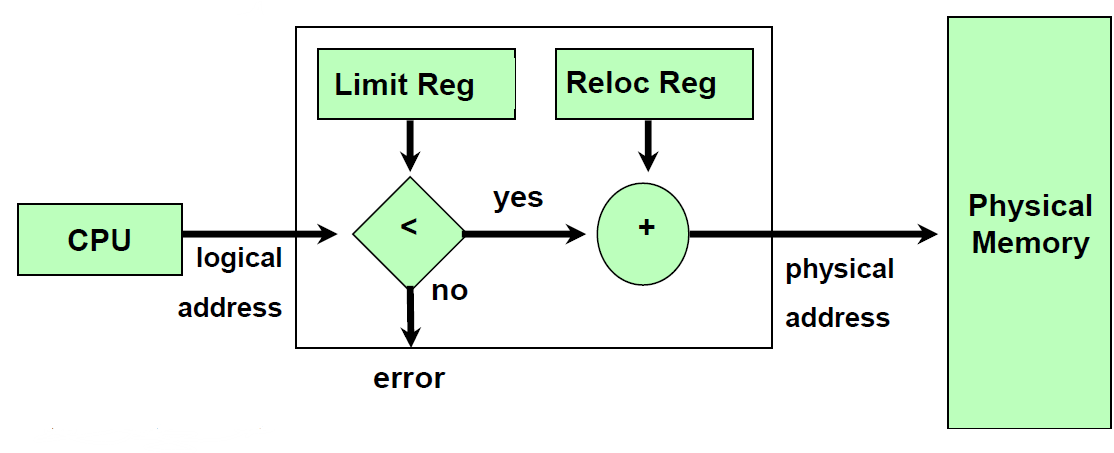 프로그램의 사이즈를 Limit register에 넣어주게 되면 Base and Limit register를 이용해서