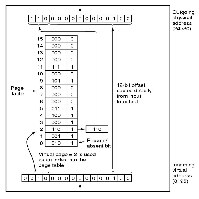 $\text{MOV REG, 8196}$명령어는 위의 그림에서 16bit으로 incoming virtual address입니다.