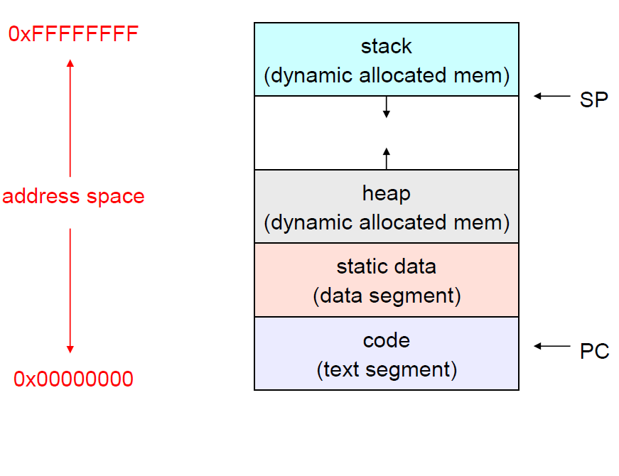 이전에도 많이 봐왔겠지만 아래의 그림은 프로세스가 사용하는 address space가 됩니다.