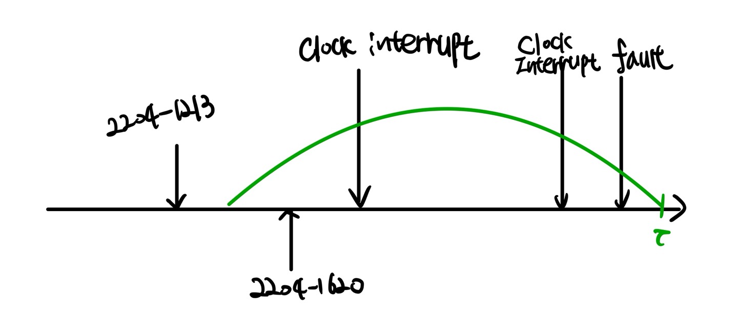 우선 clock interrupt나 fault가 발생했을 때, R bit = 0일 때에는 아래의 경우를 따릅니다.