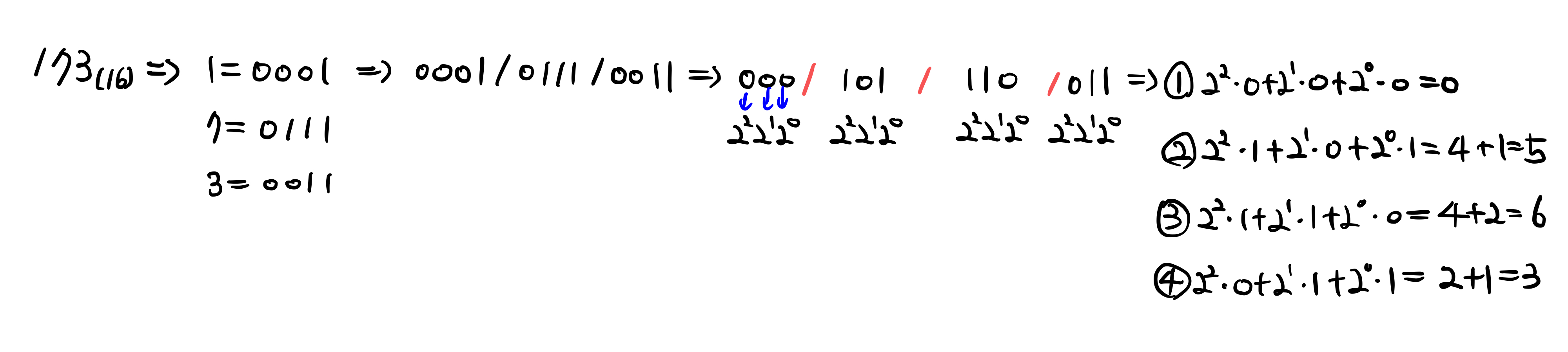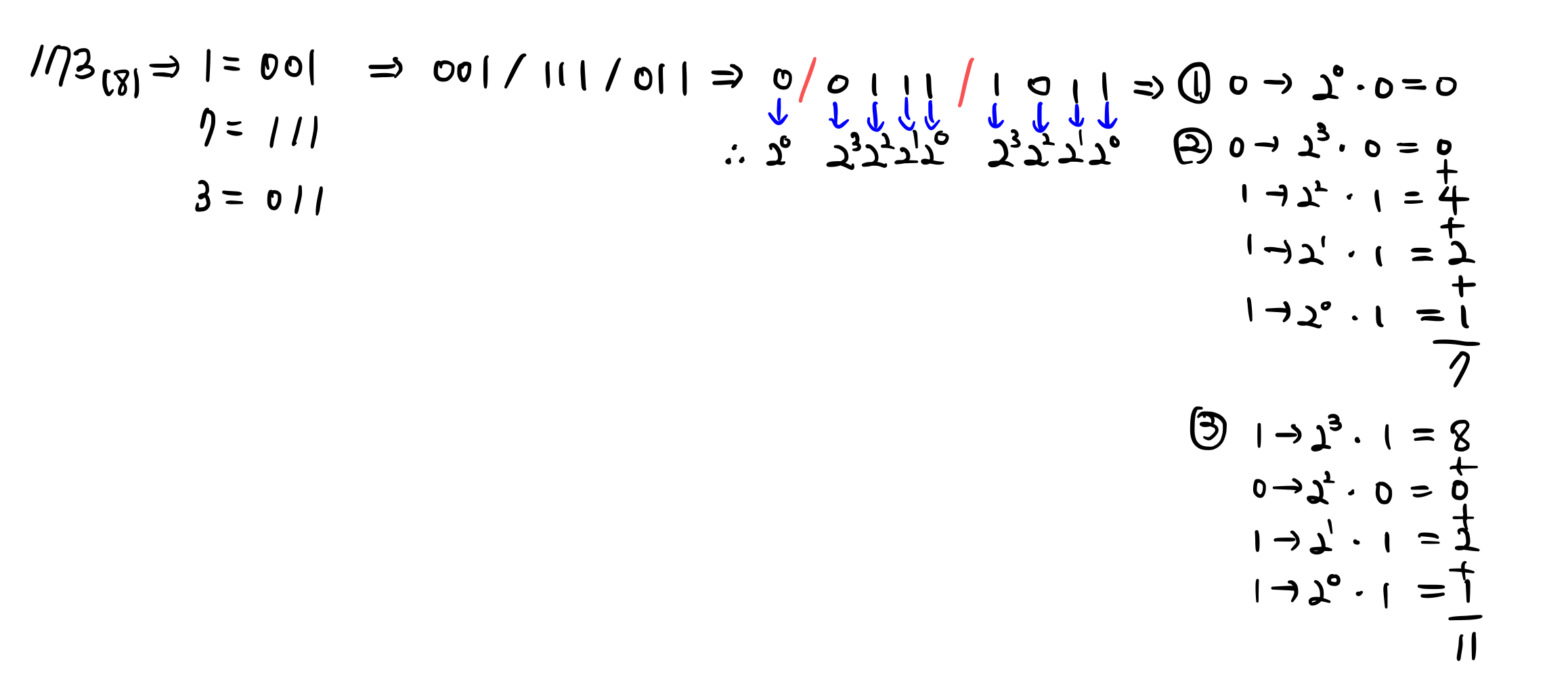 이것 또한 8진법으로 2진법으로 변환하는 과정의 역과정이라고 생각하시면 쉬울 것 같습니다.