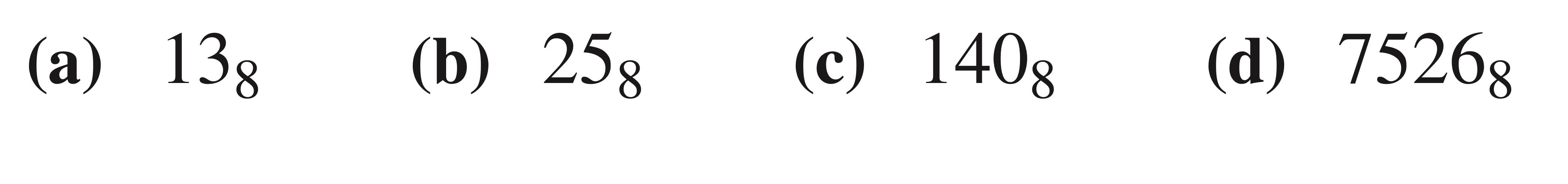 솔루션 (a)를 예로 들어보자면, 8진법 13을 각각 떼어내어 1과 3으로 봅니다.