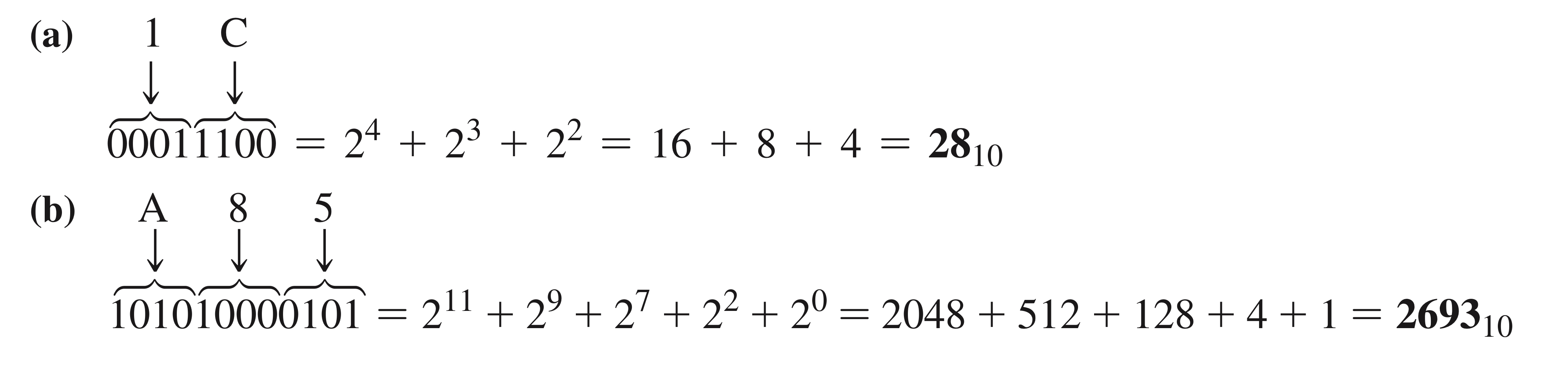 여기까지 해보면 16진법을 10진법과 2진법으로 변환하는 두 가지 방법을 알 수 있습니다.