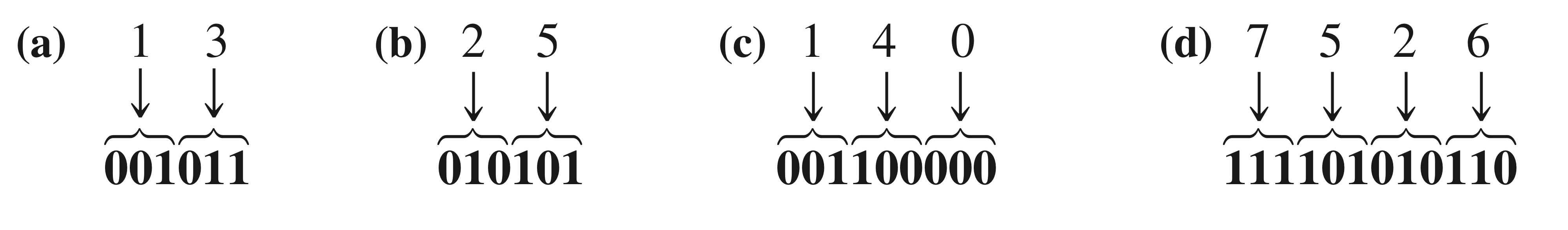 그 이후에 1을 3비트짜리 2진법으로 표현해주고, 3을 3비트짜리 2진법으로 표현해주면 됩니다.