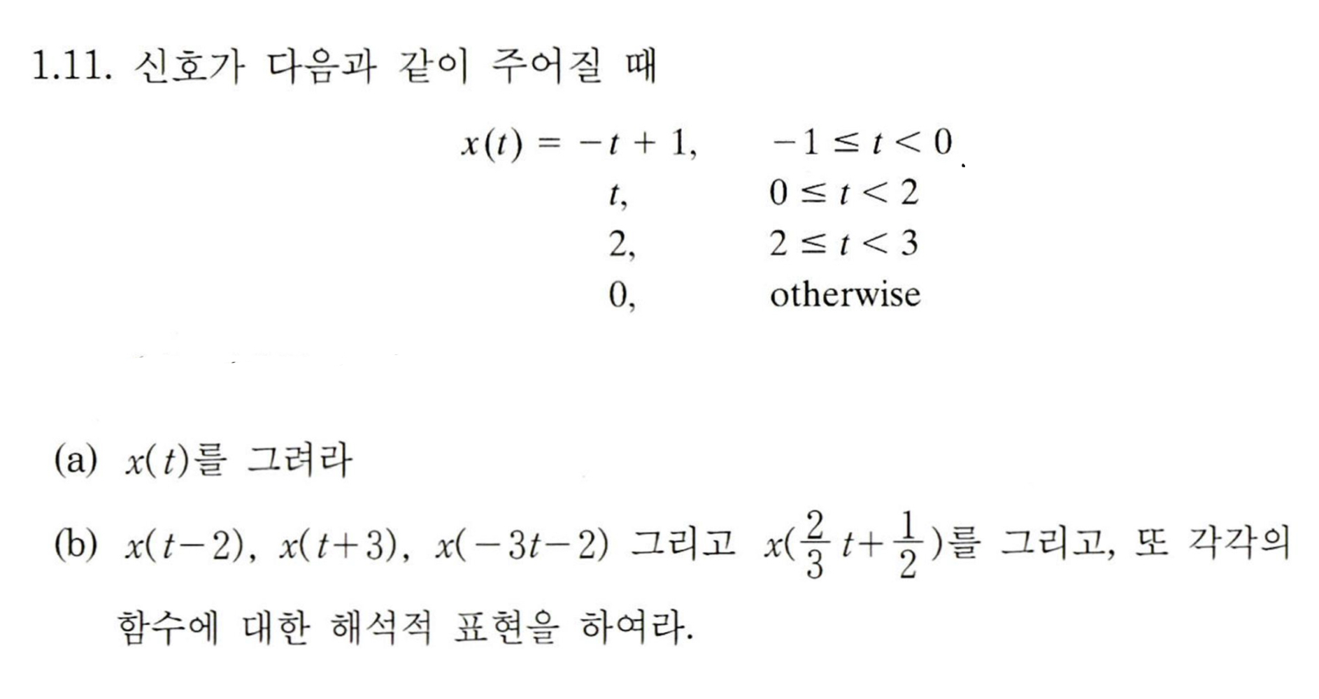 여기서 그러진 함수를 $\text{x(-t)}$로 Time Reversal한다면,