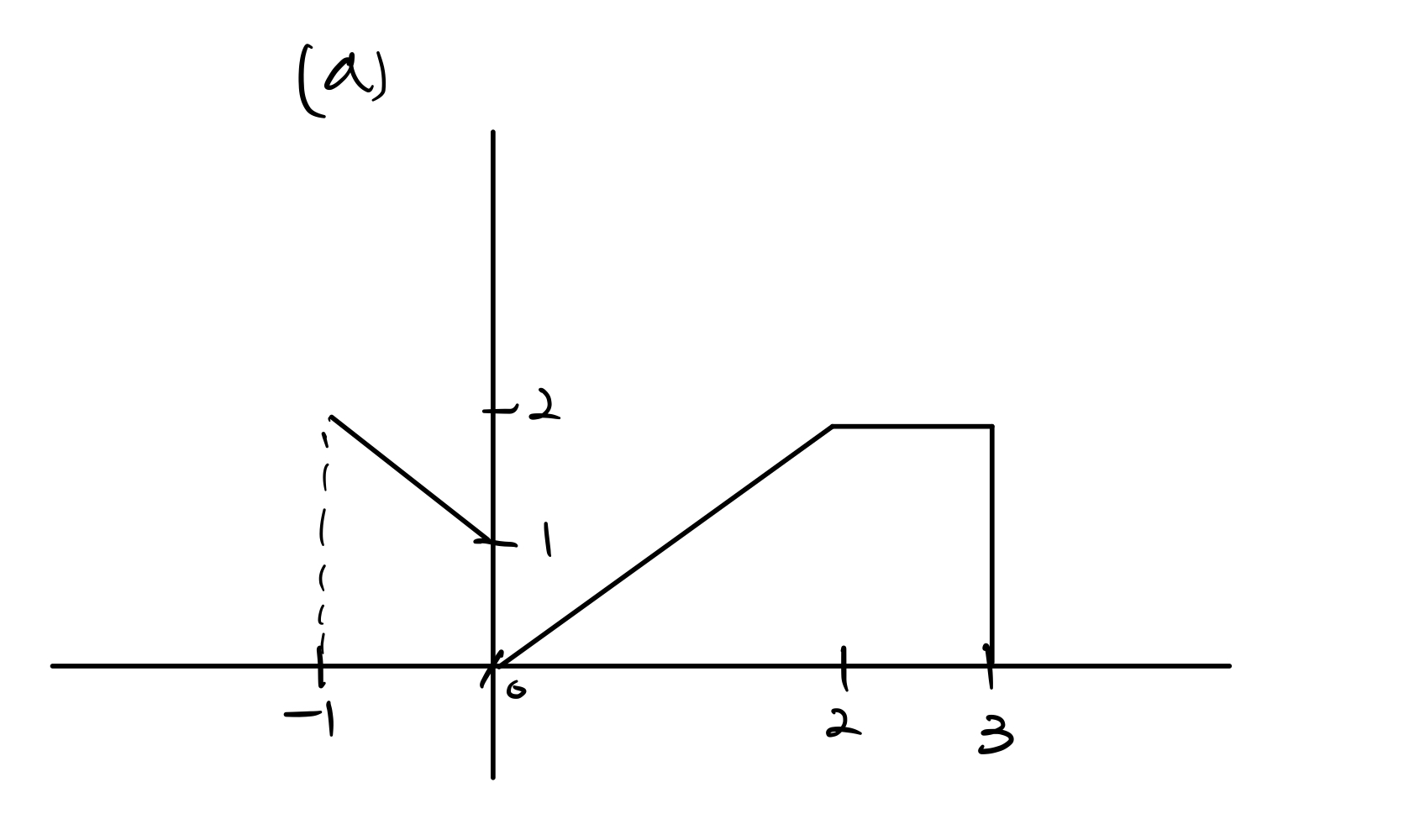 $\text{x(t)} \; = \begin{matrix} 0 \; , \; t \leq -1 \\ t+1 \; , \; -1 < t \leq 0 \\ 1 \; , \; 0 < t \leq 2 \\ 0 \; , \; t > 2\end{matrix}$