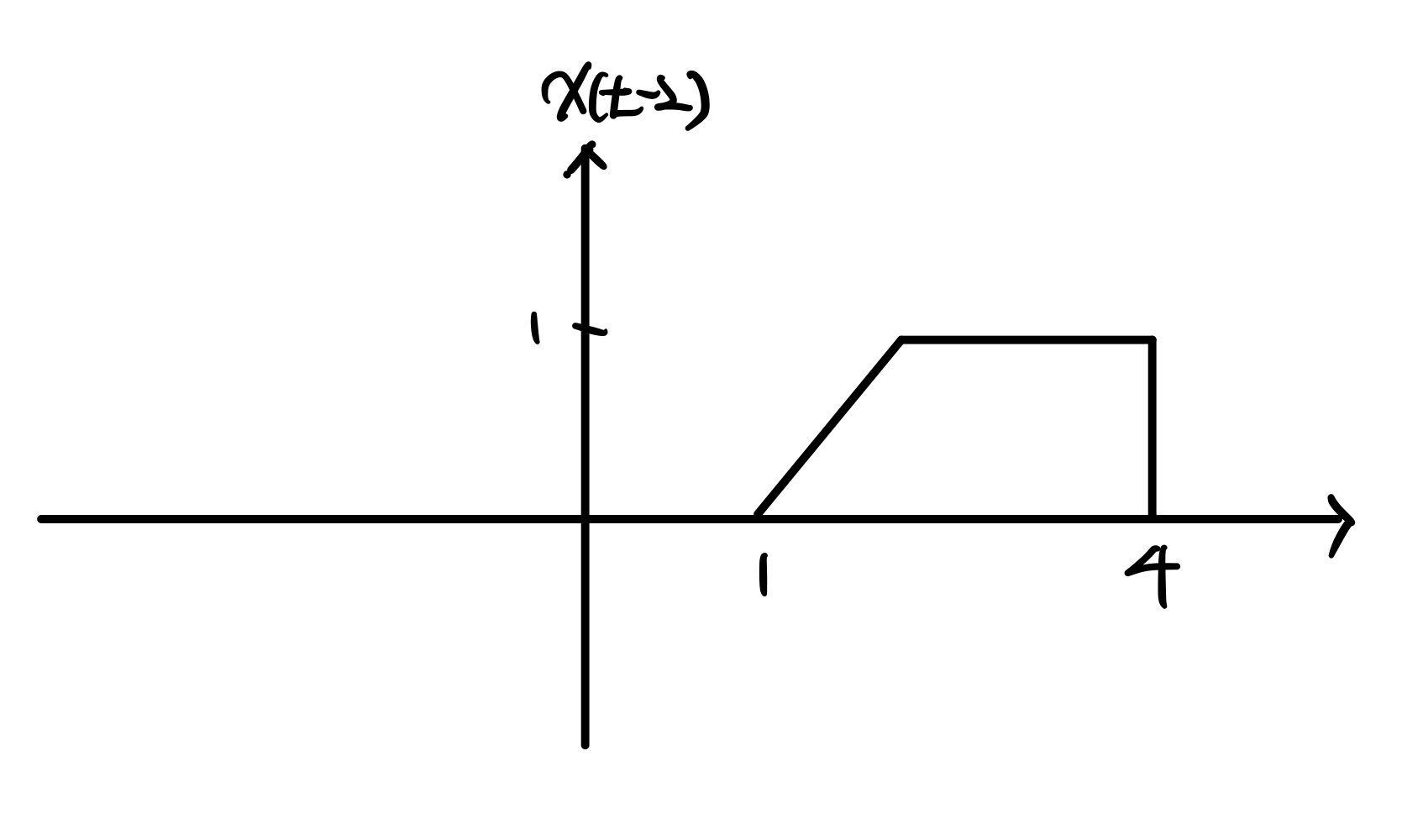 $\text{x(t)} \; = \begin{matrix} 0 \; , \; t \leq 1 \\ t-1 \; , \; 1 < t \leq 2 \\ 1 \; , \; 2 < t \leq 4 \\ 0 \; , \; t > 4\end{matrix}$