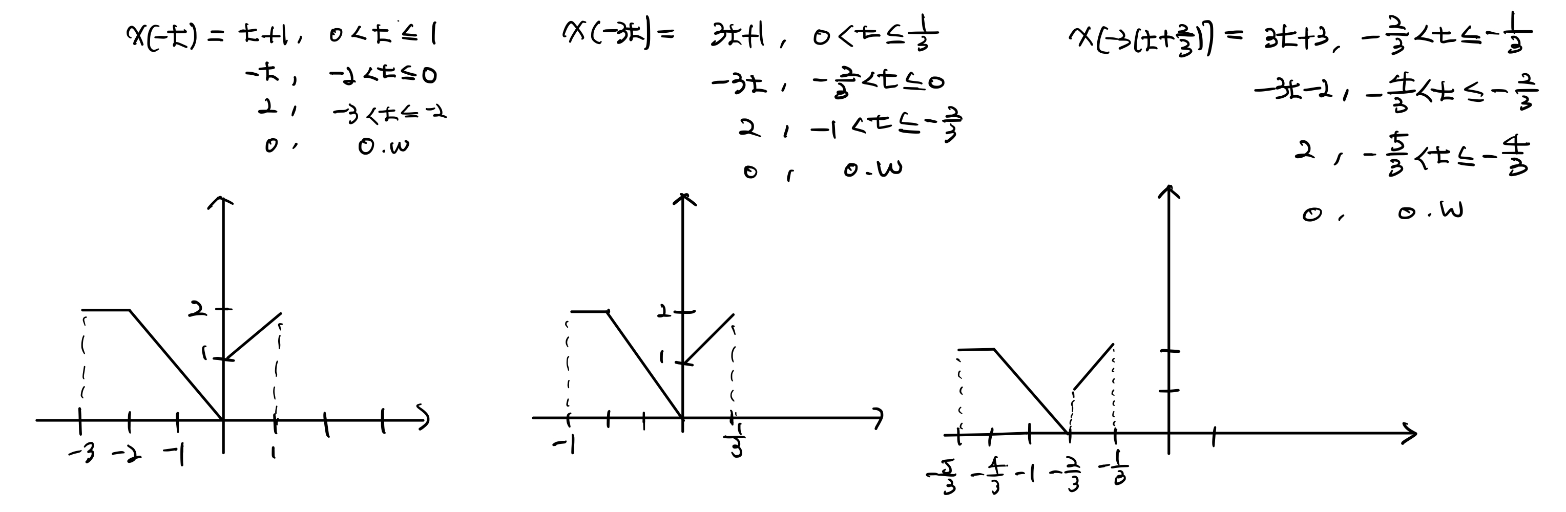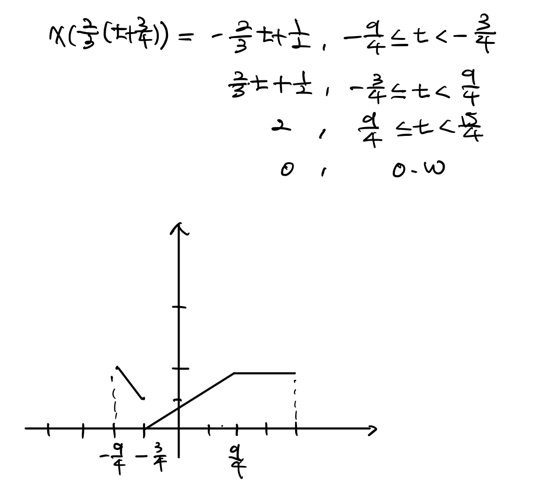 이것을 묶으면 $x(\frac{3}{2}(t+\frac{3}{4}))$이 되고, 우선 scaling을 진행하고 나서 shifting을 수행하면 됩니다.