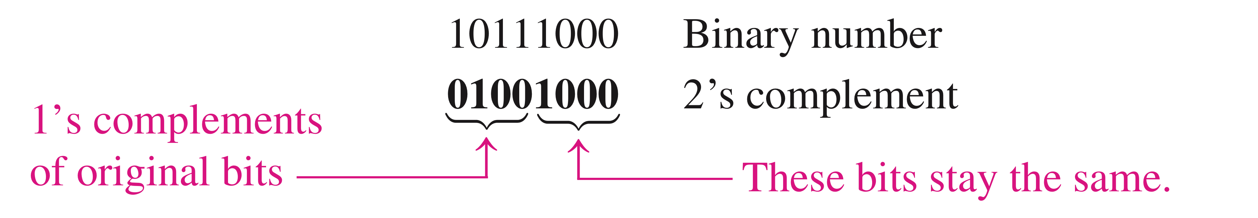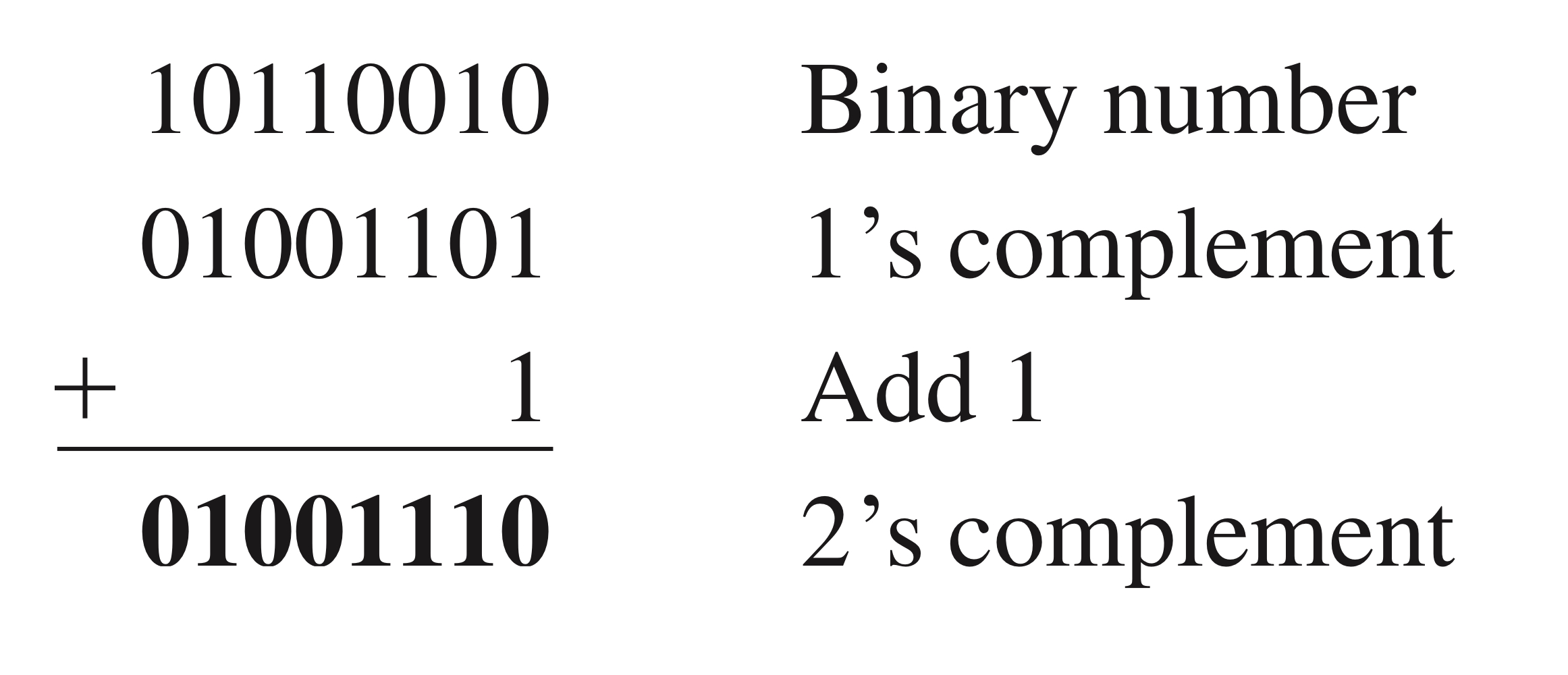 1's complement의 LSB에 1을 더해주는 것으로 구할 수 있습니다.