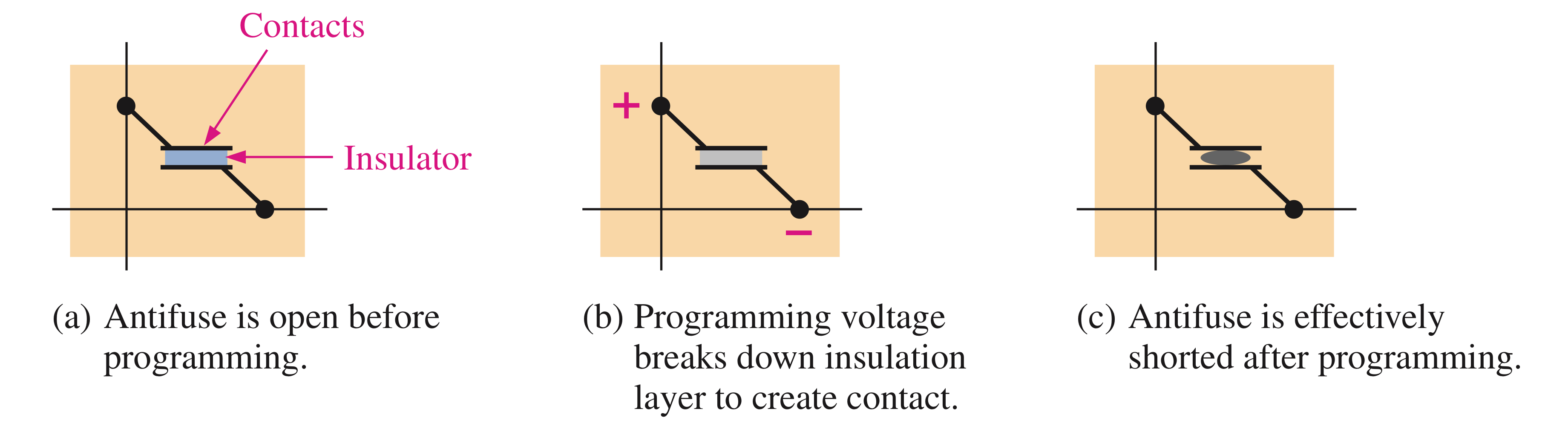 (a) 안티퓨즈는 프로그래밍 전에 개방되어 있다