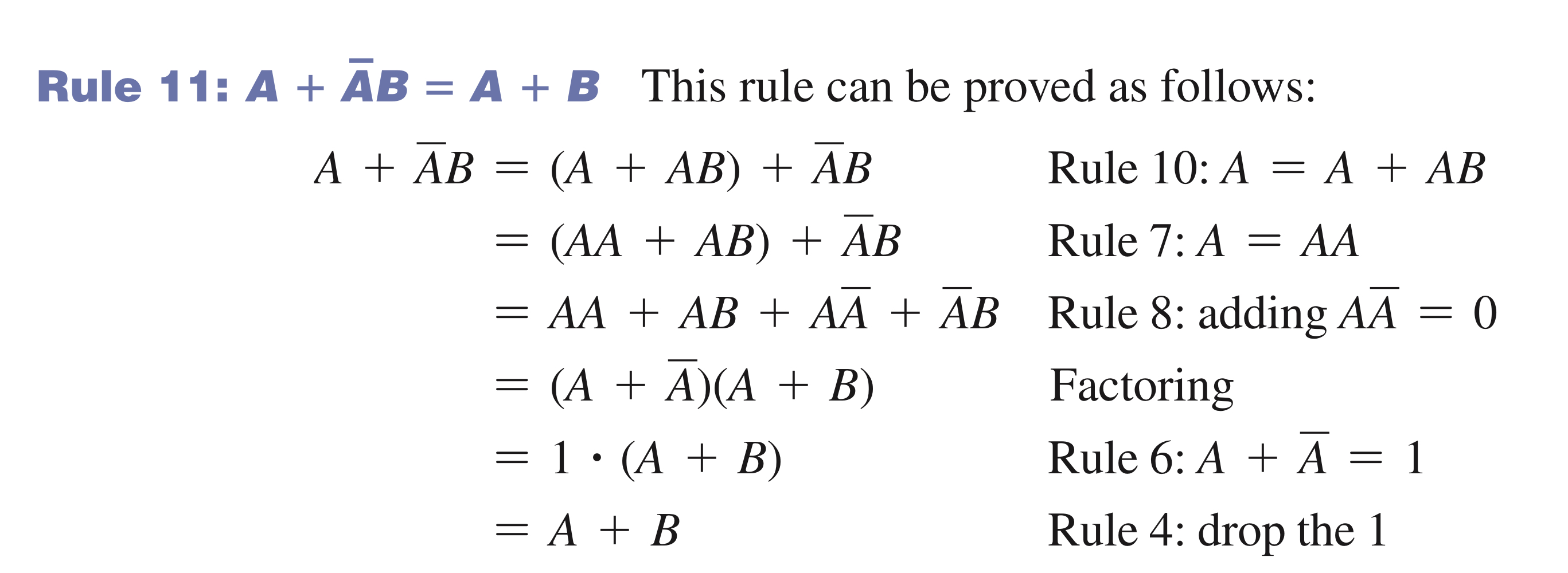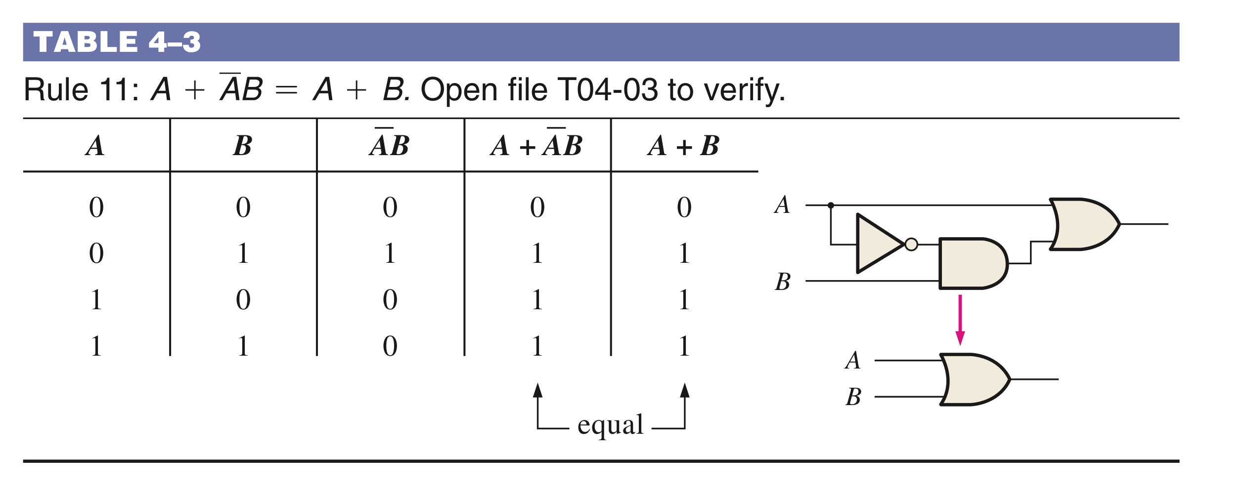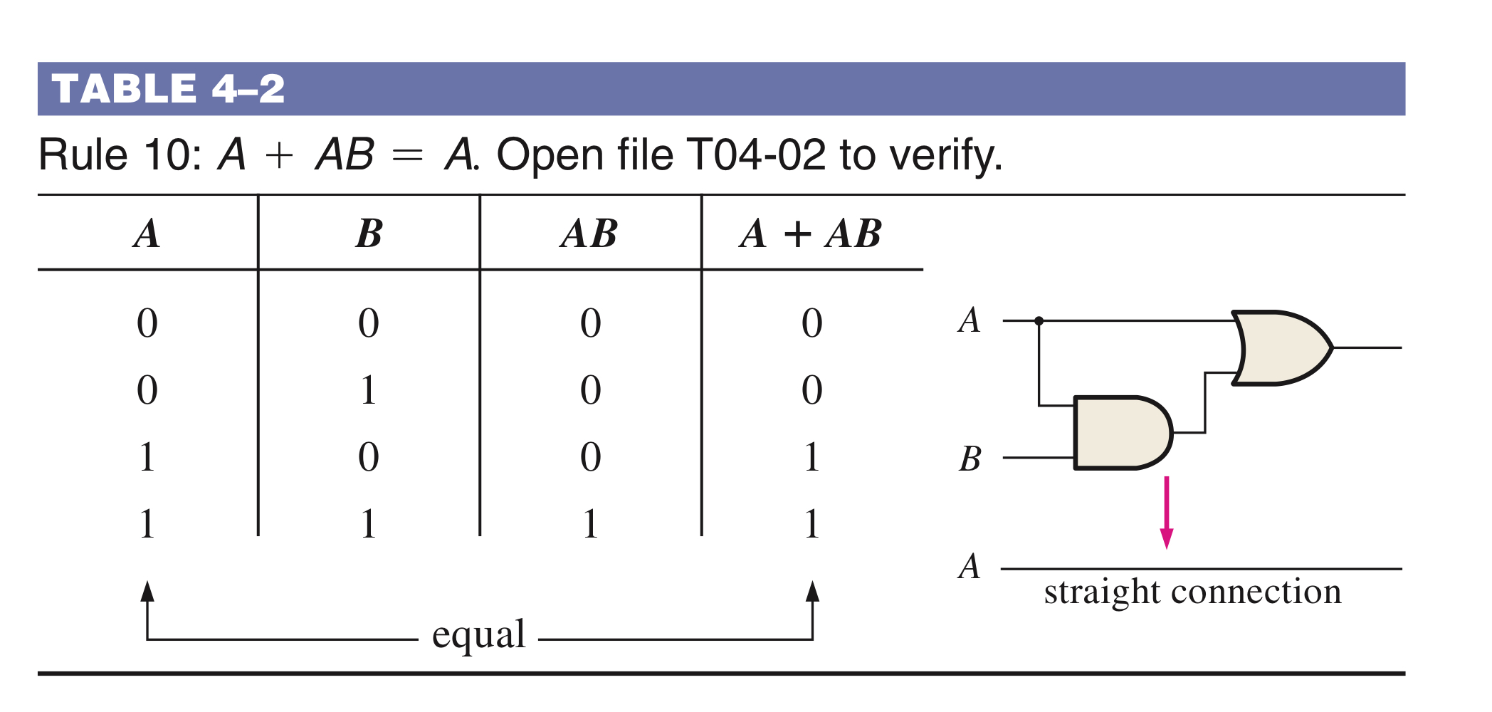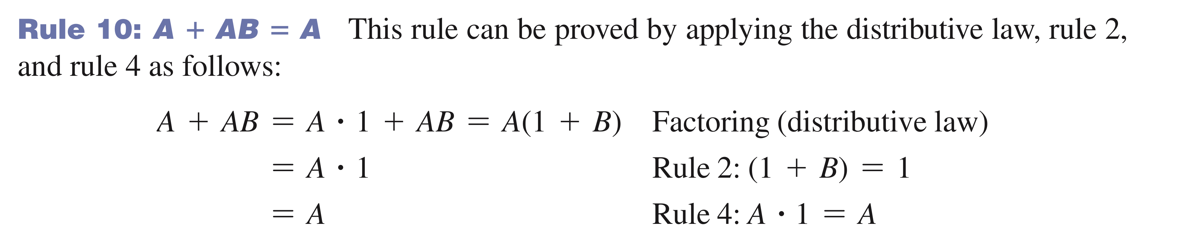 $$ x + xy = x $$ | $$ x(x + y) = x $$ |