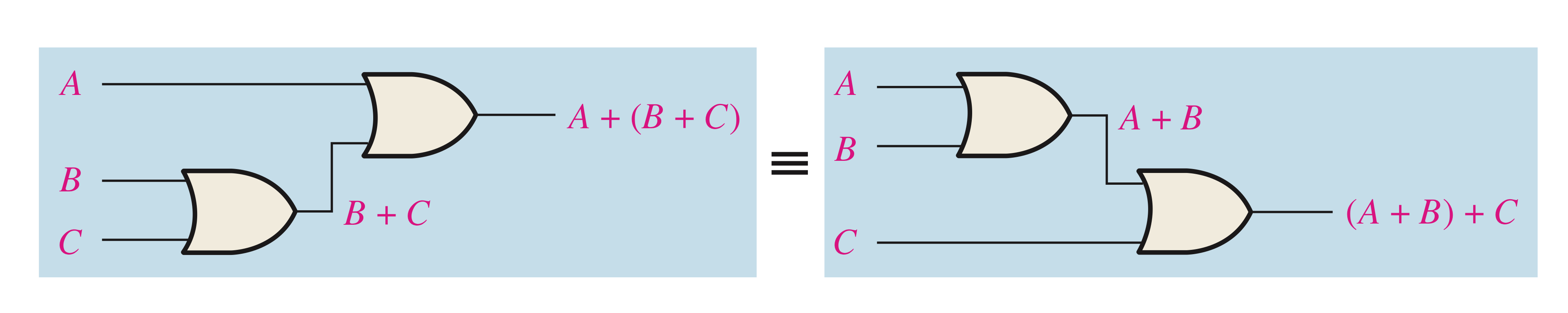 $$ x+ (y + z) = (x + y) + z $$ | $$ x(yz) = (xy)z $$ |